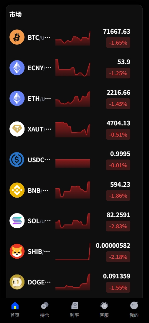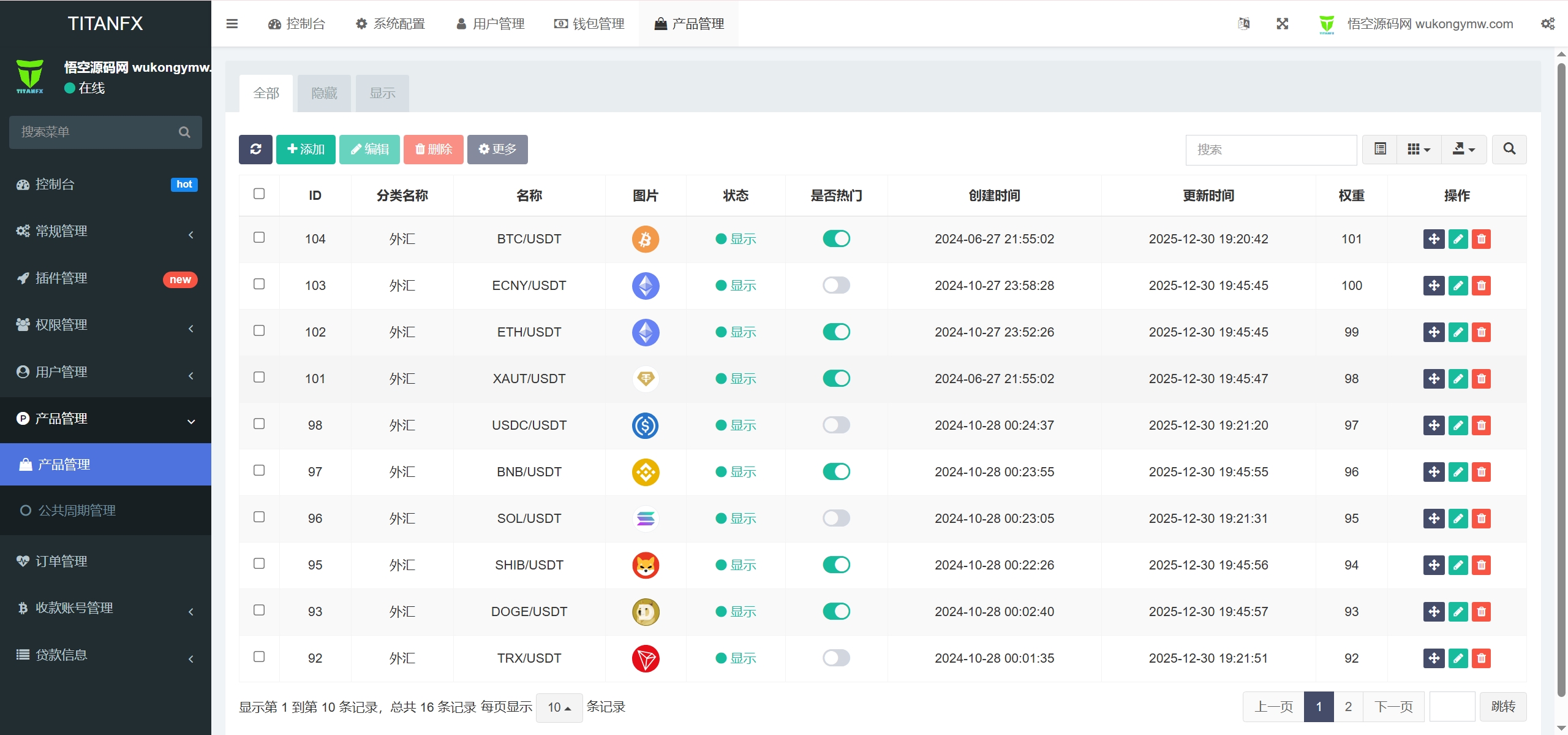 虚拟货币产品有16种,这套模版还可以二开加上外汇、期货、贵金属等产品