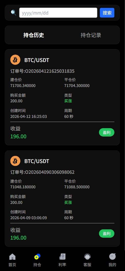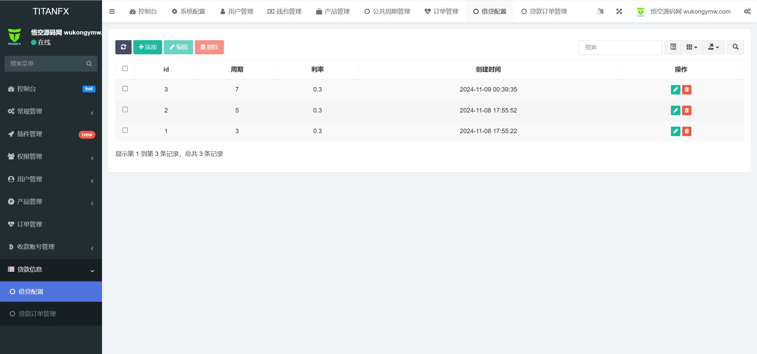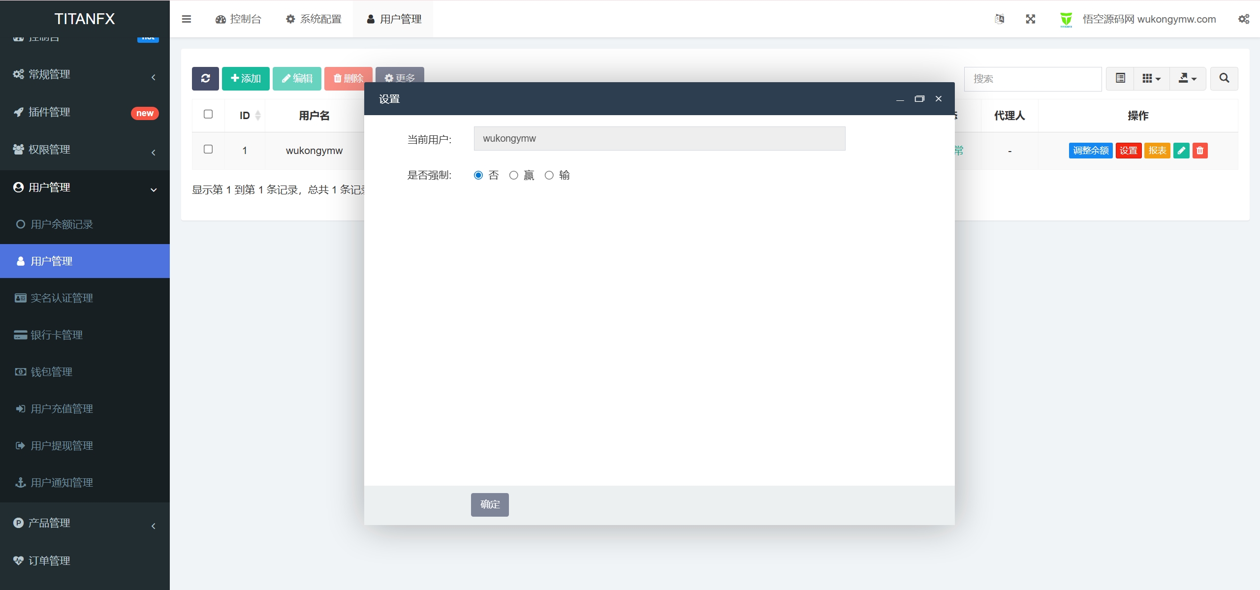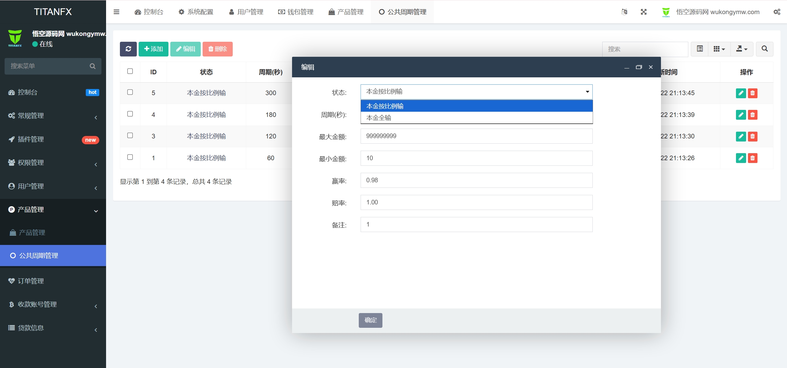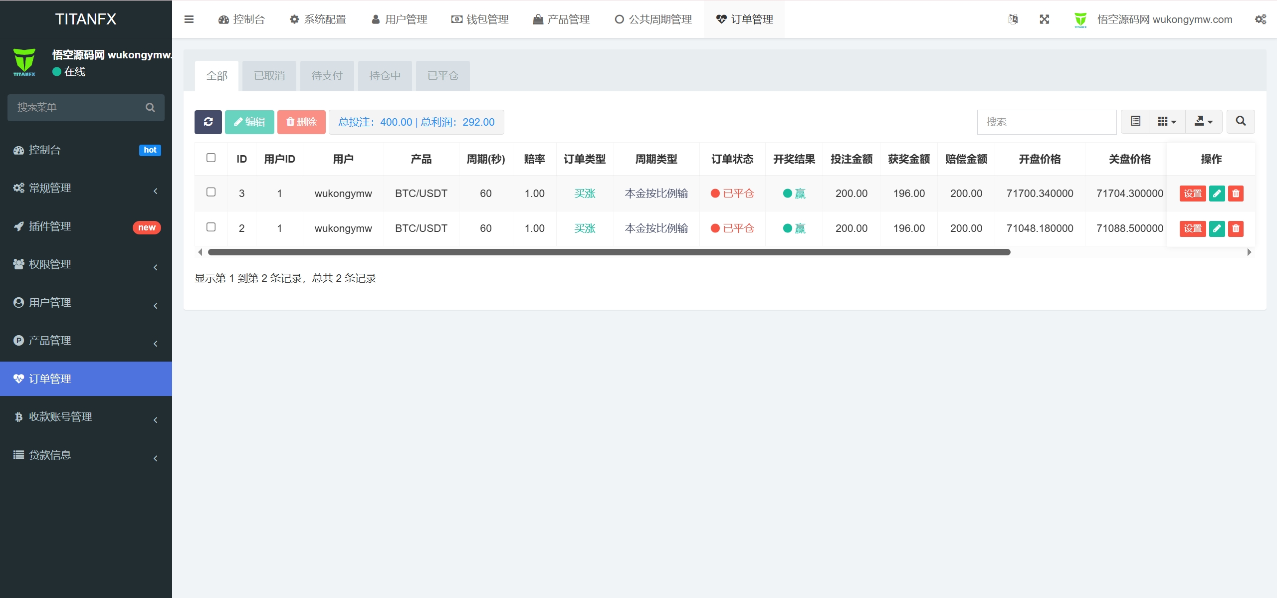 可以对用户设置输赢点控,前端功能很简单,就只是秒合约功能,有借贷功能可能前端关闭了